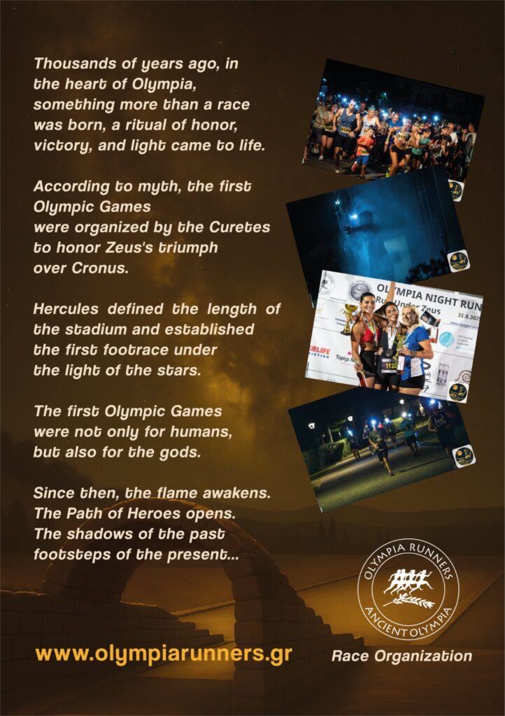 Άνοιξαν οι εγγραφές για το 2nd Olympia Night Run – Run Under Zeus, τον ξεχωριστό νυχτερινό αγώνα δρόμου που θα πραγματοποιηθεί το Σάββατο 8 Αυγούστου 2026 στην Αρχαία Ολυμπία, τον τόπο όπου γεννήθηκαν οι Ολυμπιακοί Αγώνες και το Ολυμπιακό ιδεώδες.