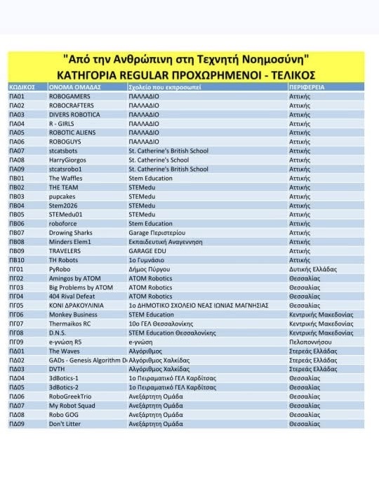 Με τεράστια υπερηφάνεια ανακοινώνουμε την κατάκτηση της 1ης θέσης στο Πανελλήνιο Πρωτάθλημα Ρομποτικής από την ομάδα μας, Py-Robo! Οι μαθητές μας (κατηγορία Δ’–ΣΤ’ Δημοτικού) όχι μόνο ανέβηκαν στο ψηλότερο σκαλί του βάθρου, αλλά εξασφάλισαν και την πρόκριση για το Προολυμπιακό Πρωτάθλημα.